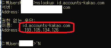 간단히 id.accounts-kakao.com 주소의 IP를 확인 해 보니,