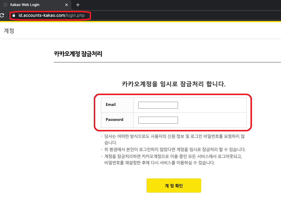 URL 도 잘 보시면 kakao.com 가 아닌, accounts-kakao.com 입니다.