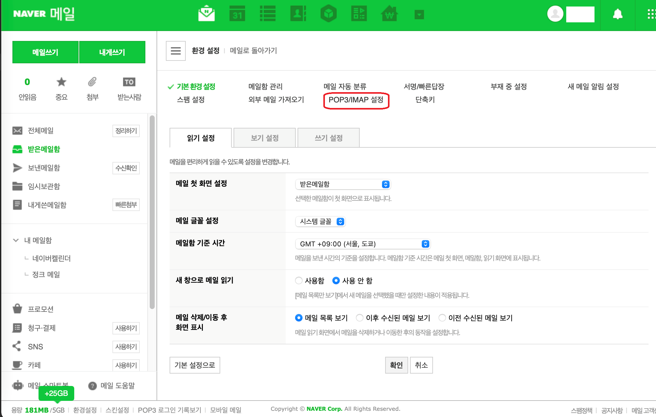 4. 네이버 메일 POP/IMAP 기능 비활성화 하기