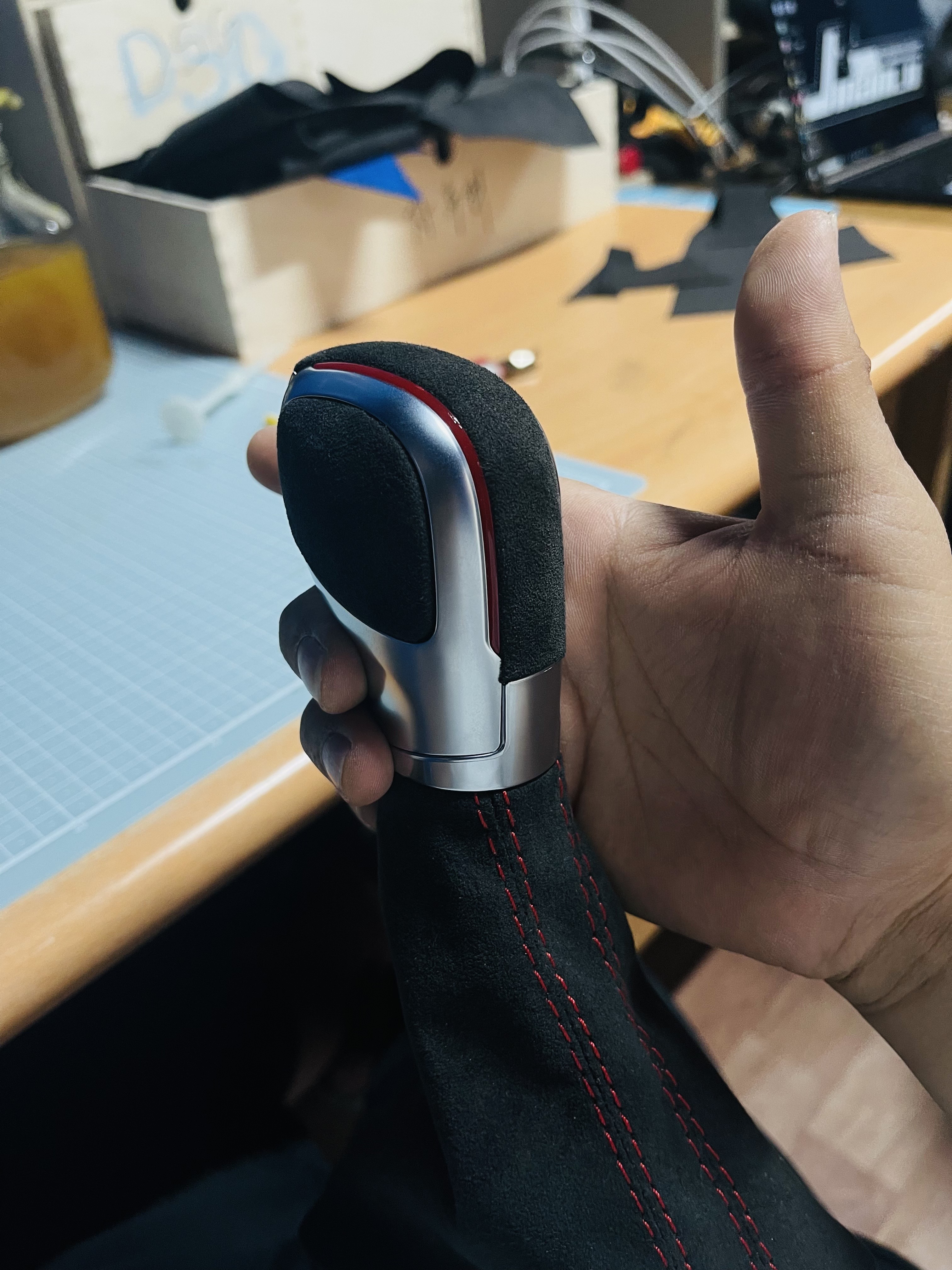 레드포인트가 추가된 알칸타라 핸들.