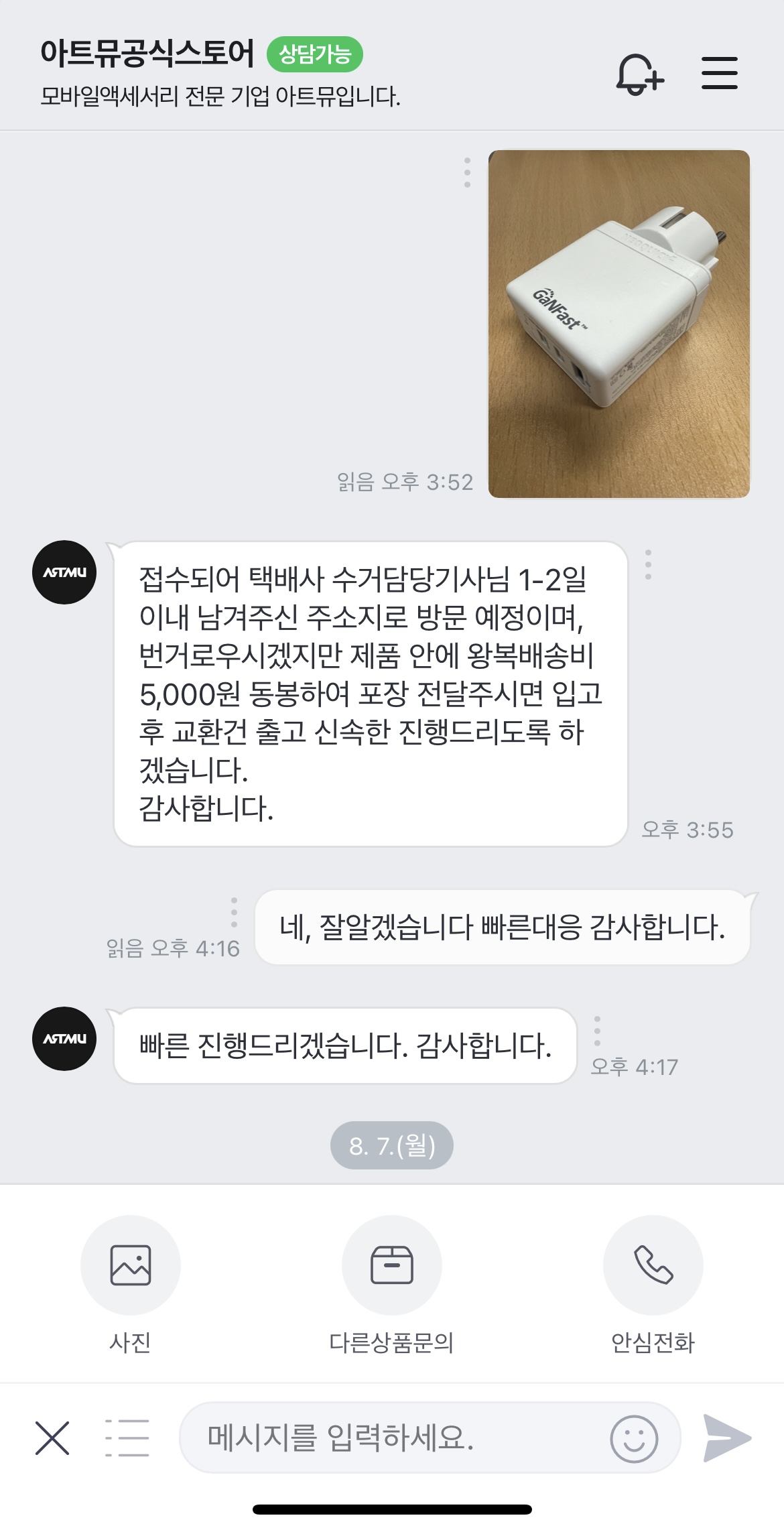 따라서 왕복택배비만 부담하면 교환이 가능한 것이었다.