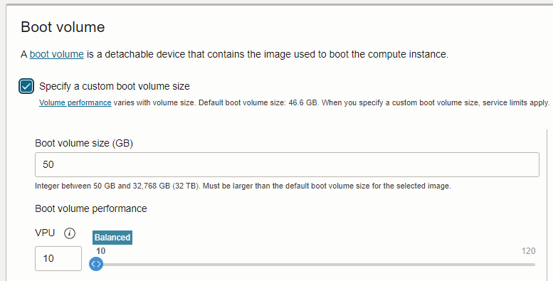 Boot Volume은 기본 50GB 으로 설정 된다.