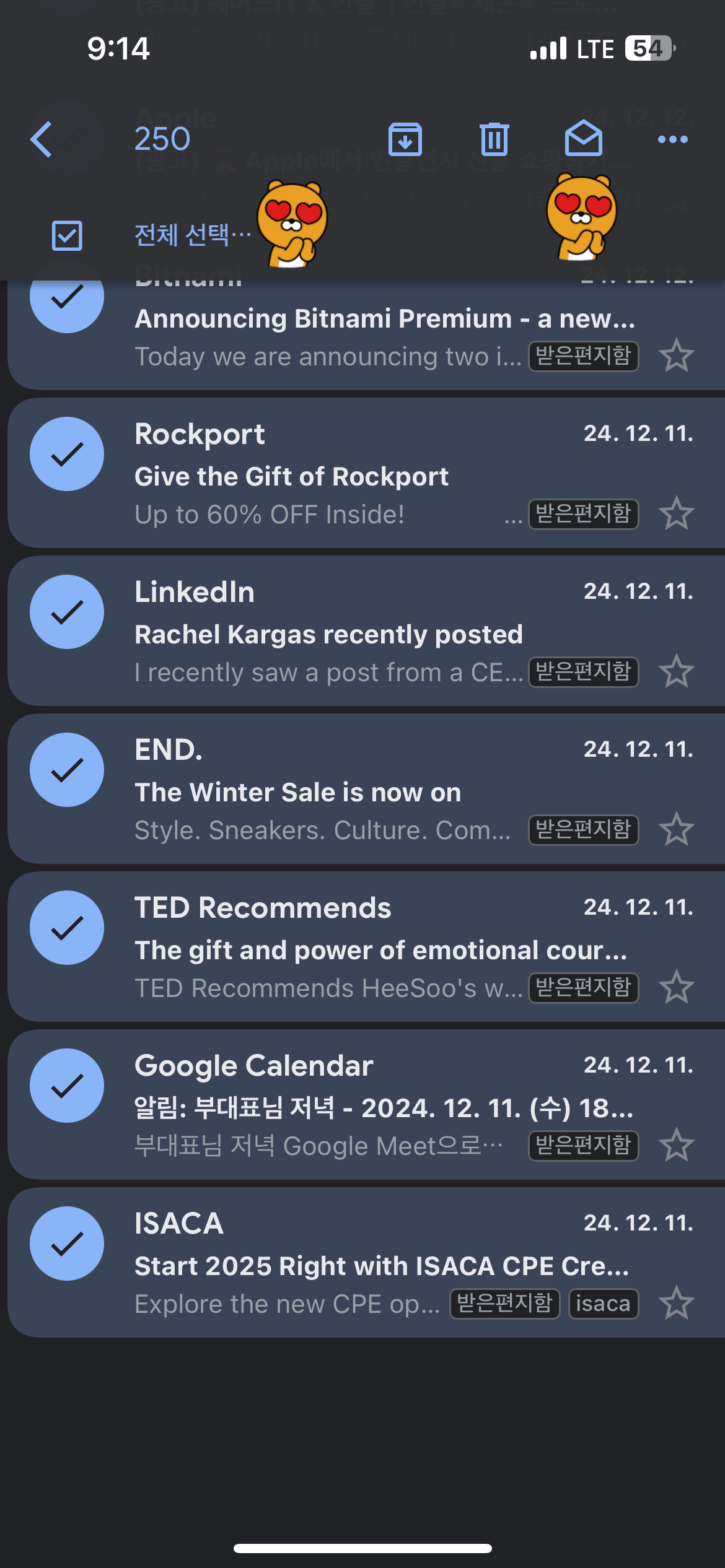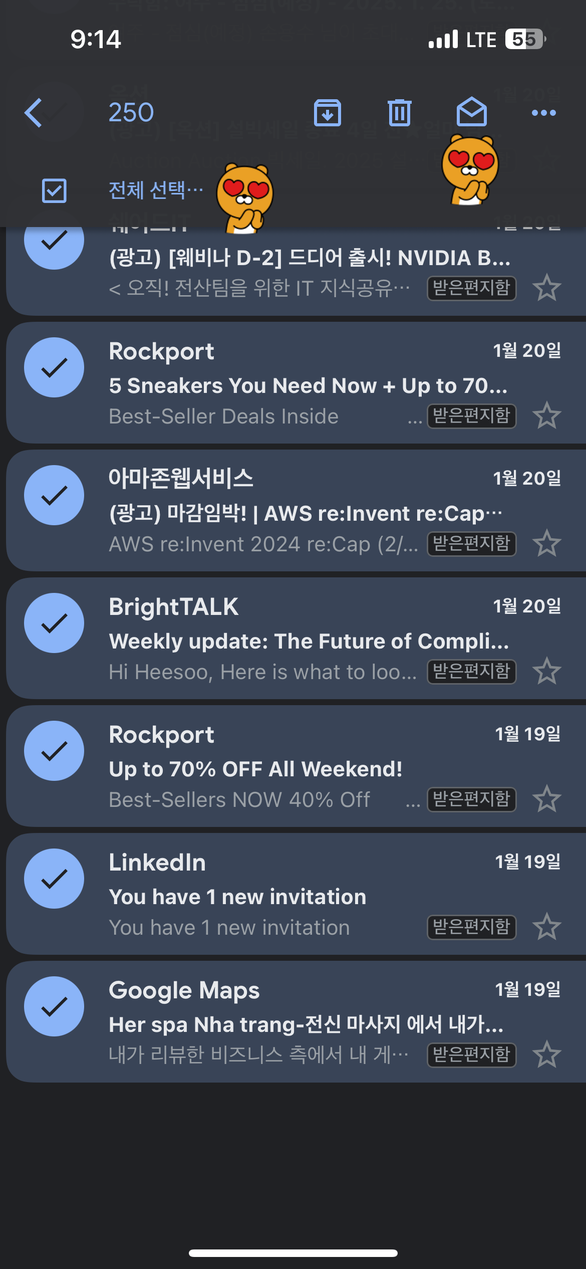 자 이제 250개를 한번에 '읽음'처리 했으니 반복 하면 된다.